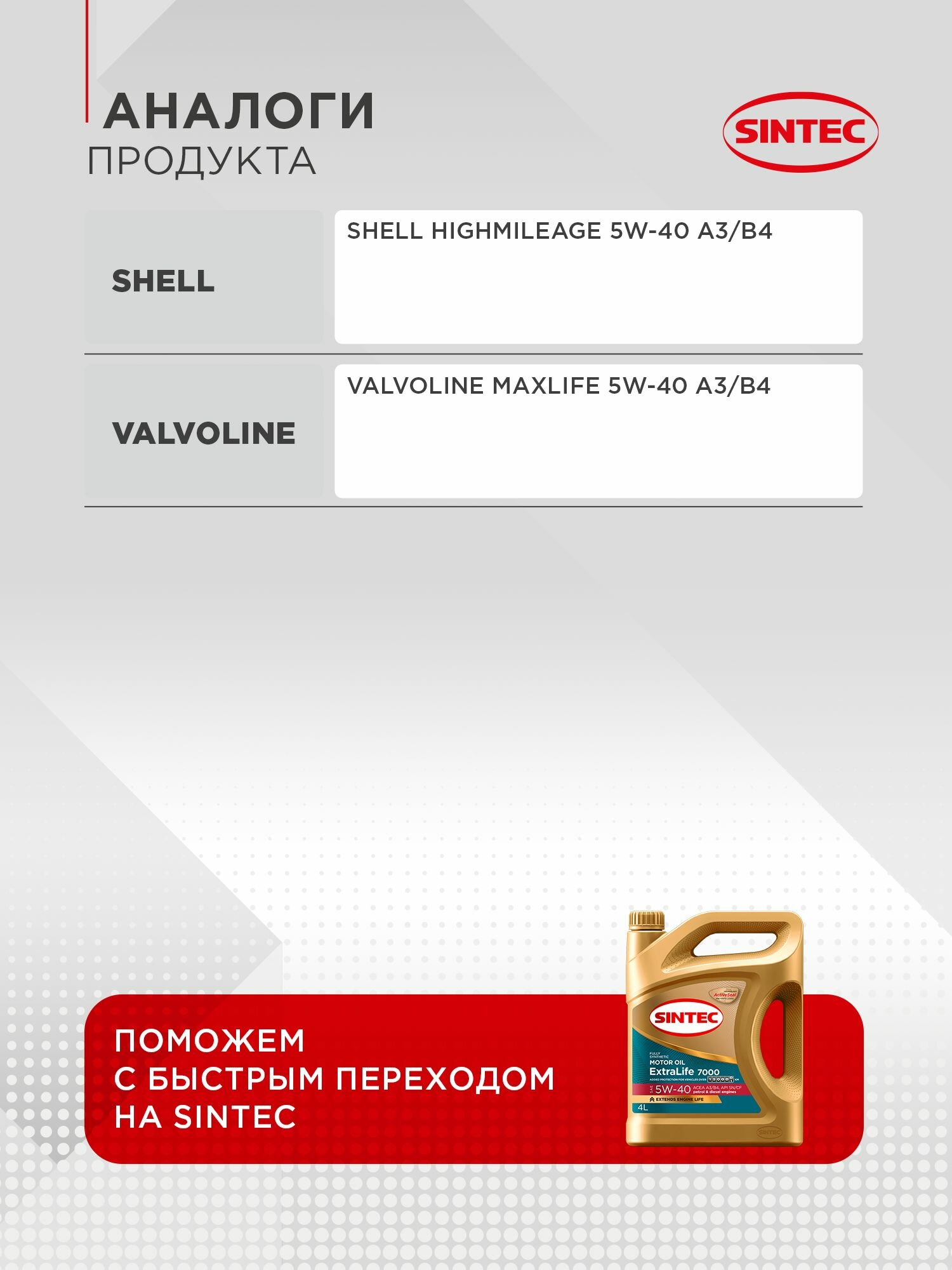 Ниже Вы можете прочитать отзывы на Моторное масло SINTEC EXTRALIFE 7000 SAE 5W-40, API SN/CF, ACEA A3/B4 Синтетическое 4 л, ознакомится с подробными характеристиками, посмотреть интересные обзоры и фотографии на Моторное масло SINTEC EXTRALIFE 7000 SAE 5W-40, API SN/CF, ACEA A3/B4 Синтетическое 4 л.