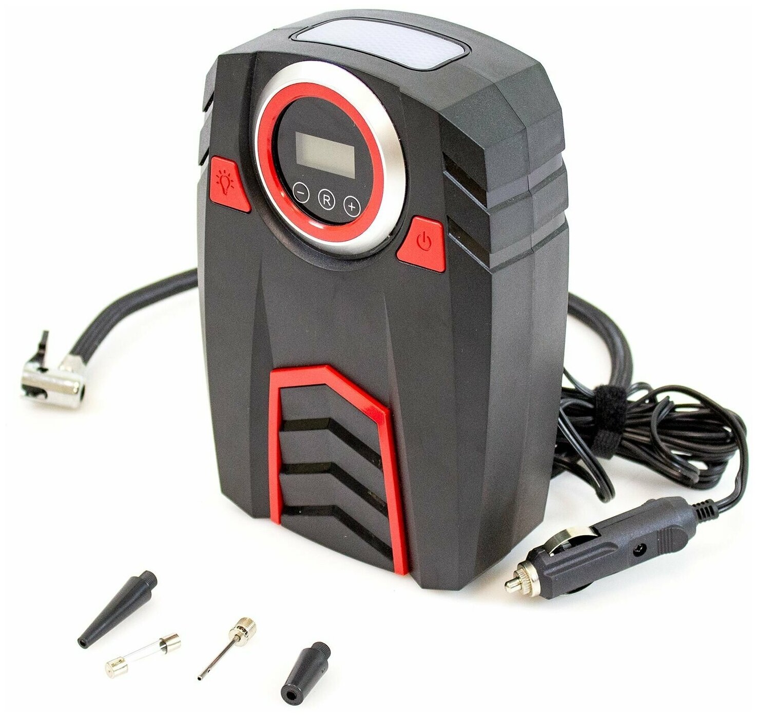 | Подробная комплектация | - Компрессор автомобильный; - Набор коннекторов; - Запасной предохранитель; - Инструкция по эксплуатации. |