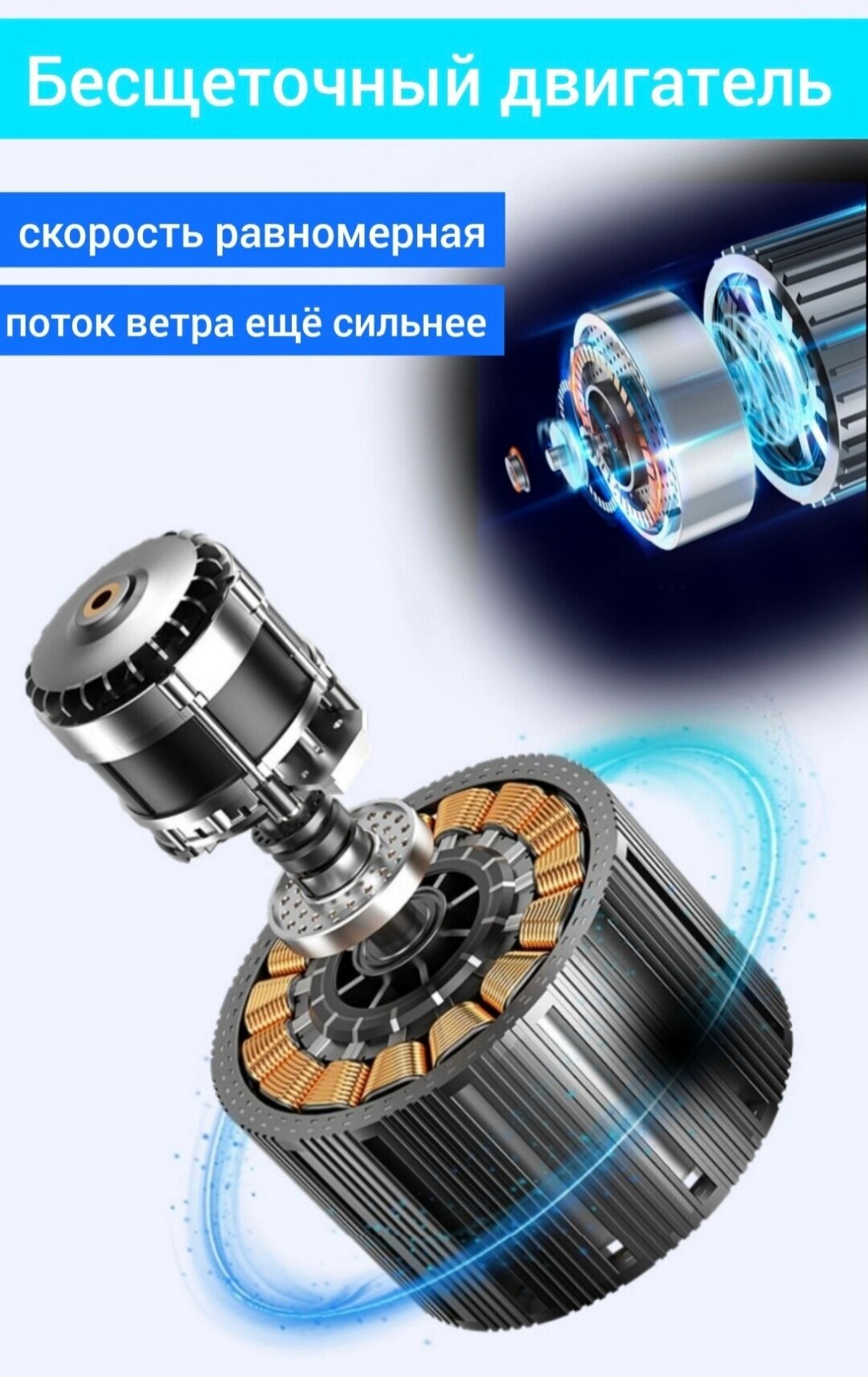 Вентилятор настольный с прищепкой синий