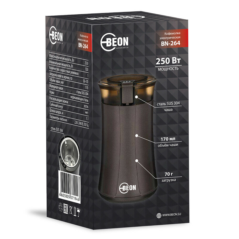 Кофемолка электрическая BEON BN-263, 250Вт, чаша 170 мл