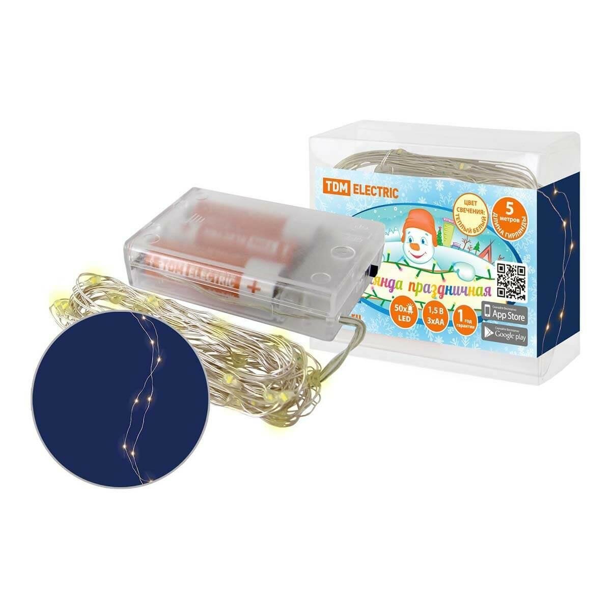 Купить Гирлянда светодиодная "Роса50" 50LED, 5м, 3000К, 3хАА, TDM