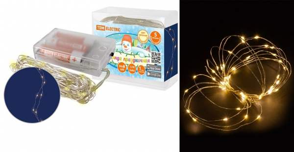 Гирлянда светодиодная "Роса50" 50LED, 5м, 3000К, 3хАА, TDM интересное: