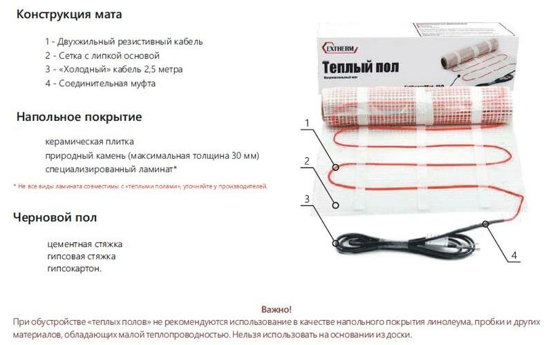| Тип | нагревательный мат |