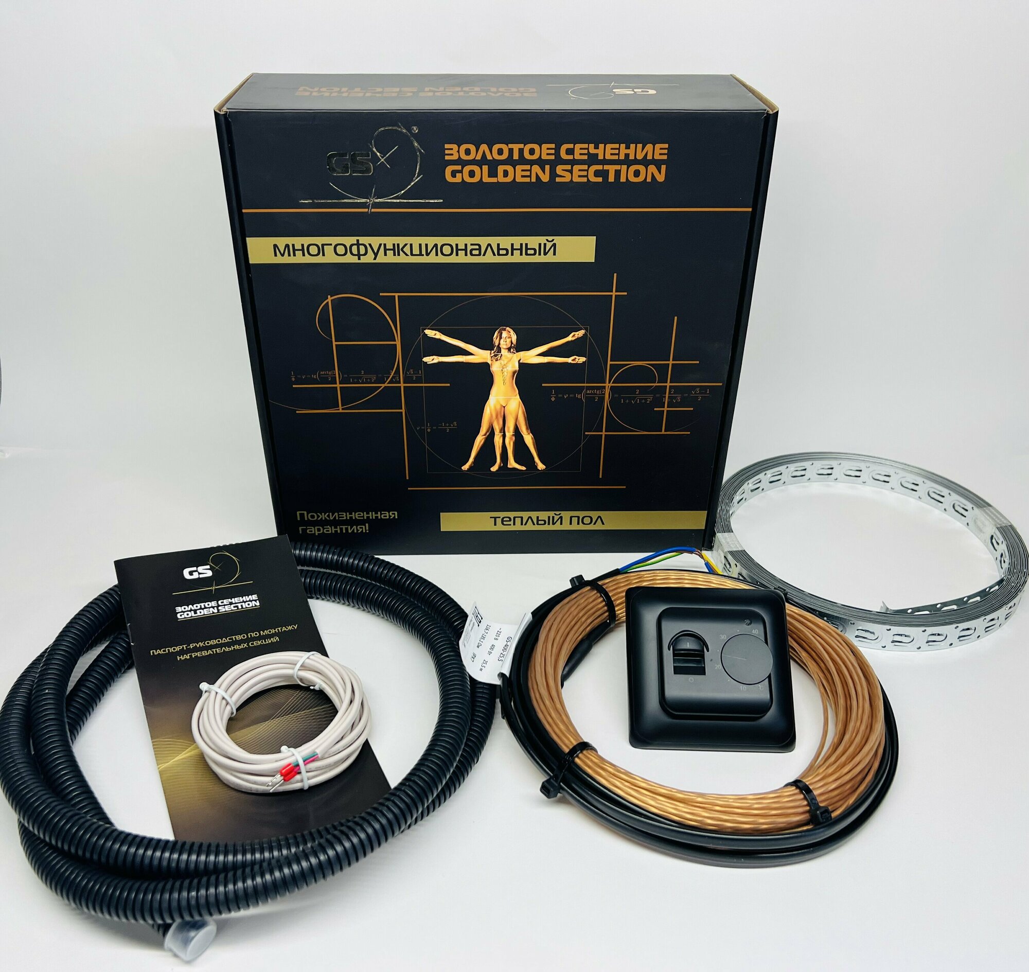 Теплый пол электрический в стяжку, под все поверхности, нагревательная секция GS 480Вт 30м (2.1-3.6 м2), Золотое сечение, без терморегулятора