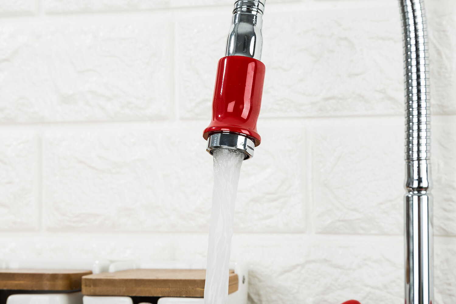 Смеситель для кухни, Frud, с кран-буксой, гибкий излив, красный, R43127-10