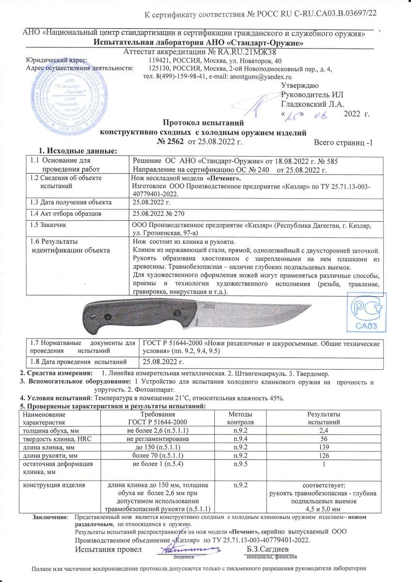 Нож Кизляр "Печенег" 015101 артикул 03091 интересное: