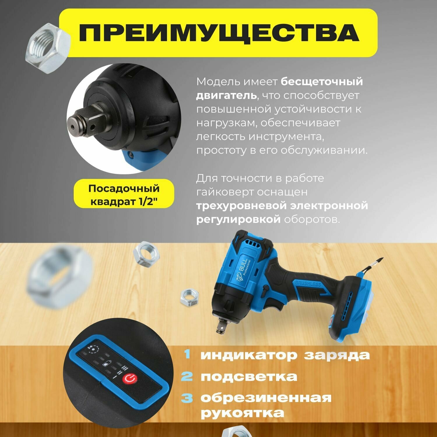 Гайковерт аккумуляторный ударный BULL SC 1801 (0329061) интересное:
