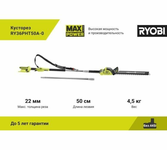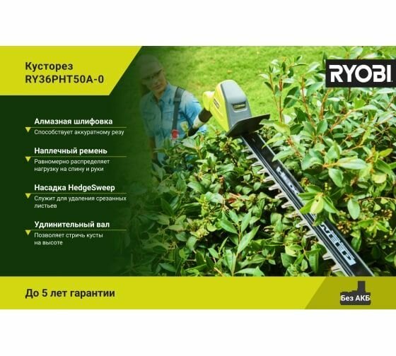 Кусторез Ryobi RY36PHT50A-0 (5133005382) интересное: