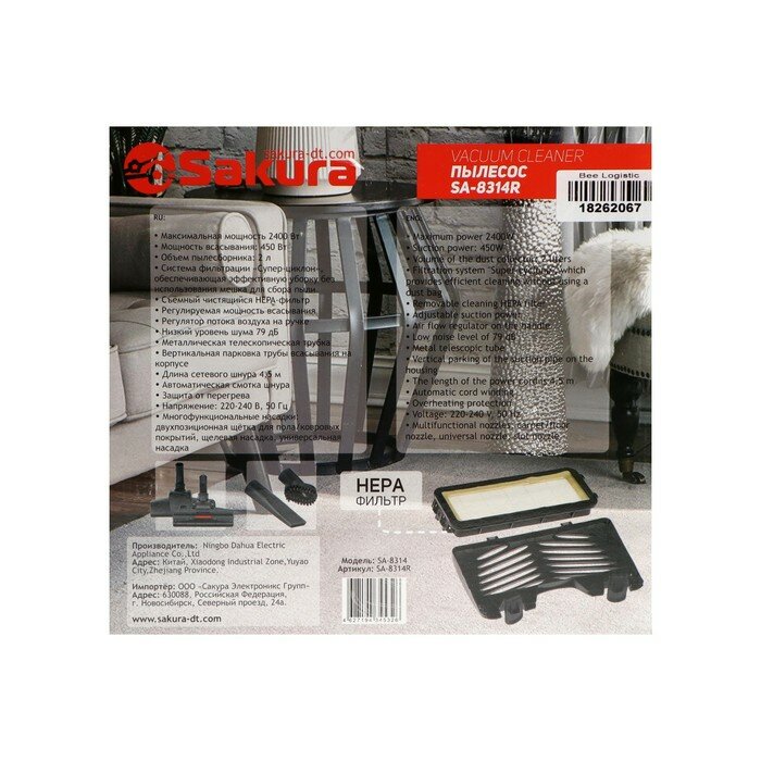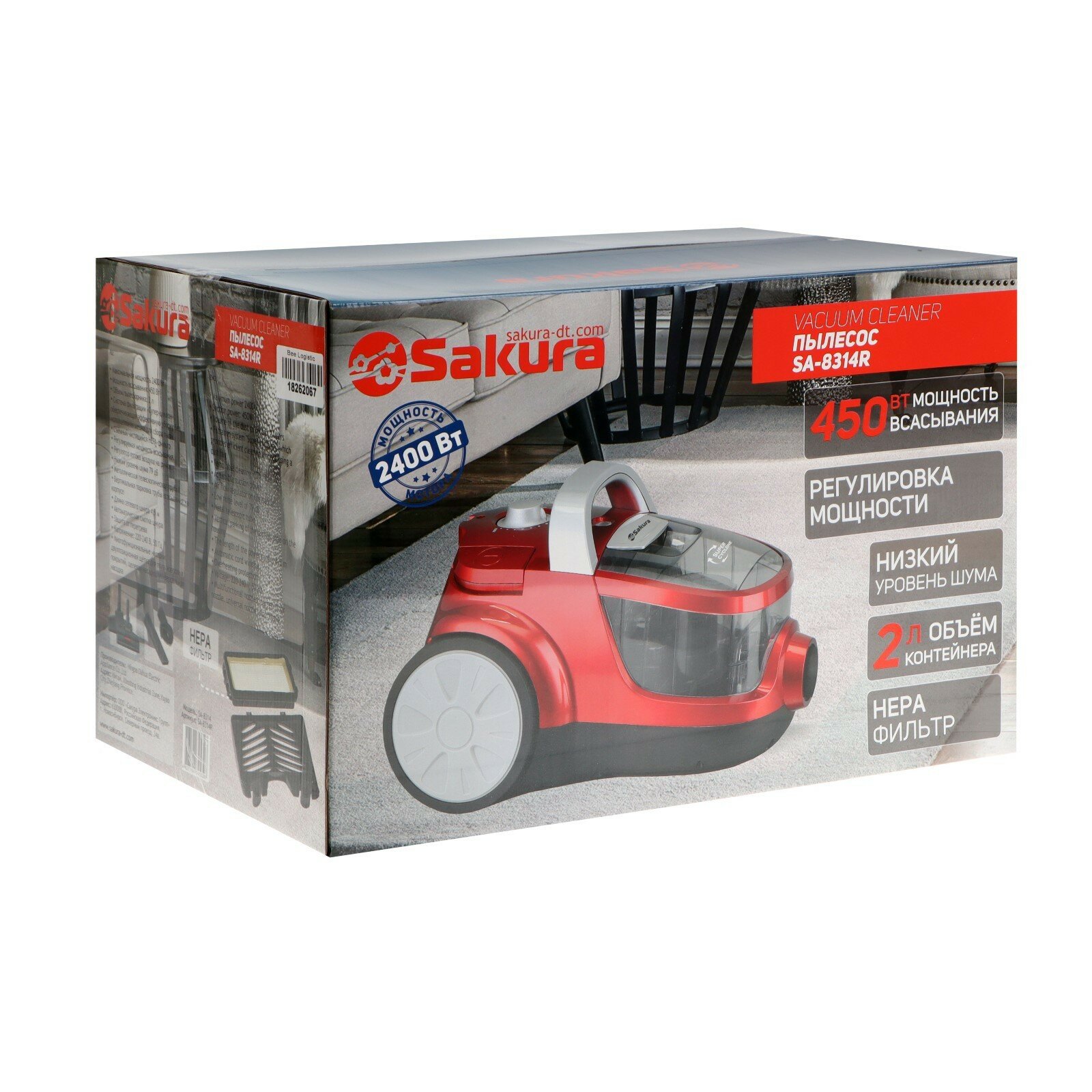 Пылесос Sakura Sa-8314r, 2400/450 Вт, HEPA-фильтр, 2 л, красный Sakura 10062481 .