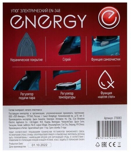 Ниже Вы можете прочитать отзывы на Утюг Energy EN-348 черно-бирюзовый (2600Вт, пар, спрей, пар. удар, самооч, керамич. подошва) (270083), ознакомится с подробными характеристиками, посмотреть интересные обзоры и фотографии на Утюг Energy EN-348 черно-бирюзовый (2600Вт, пар, спрей, пар. удар, самооч, керамич. подошва) (270083).