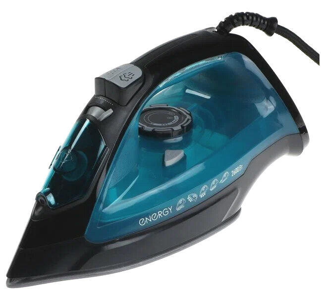 Утюг Energy EN-348 Черно-бирюзовый, подошва керам., 2,6кВт, пар, спрей, пар.удар, самоочистка 270083 (арт. 845425)