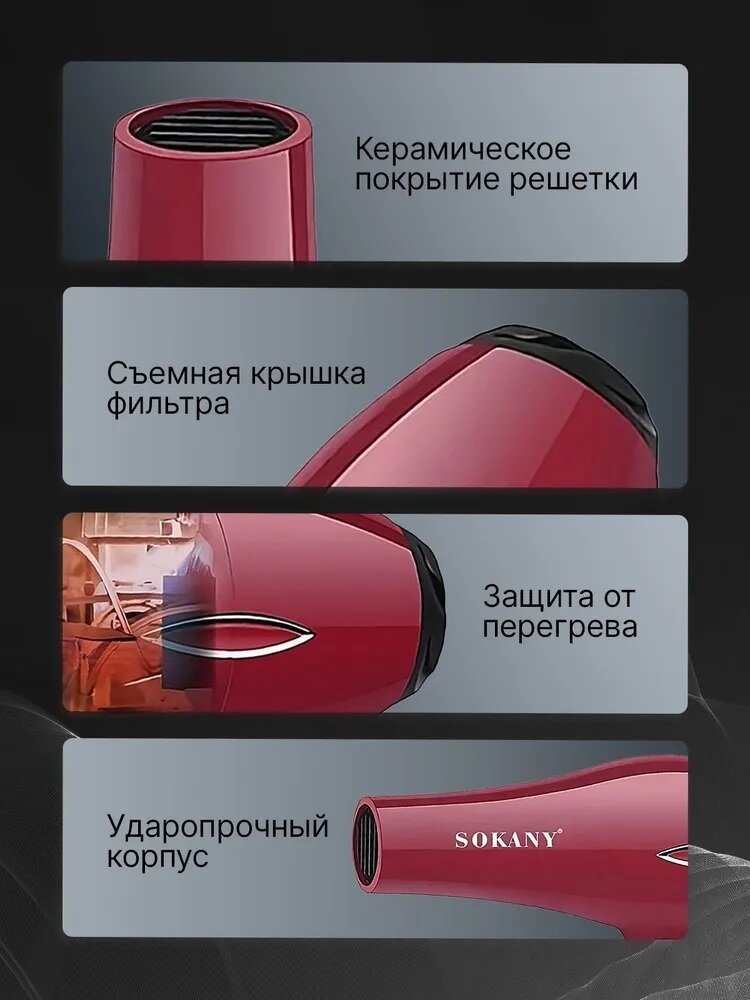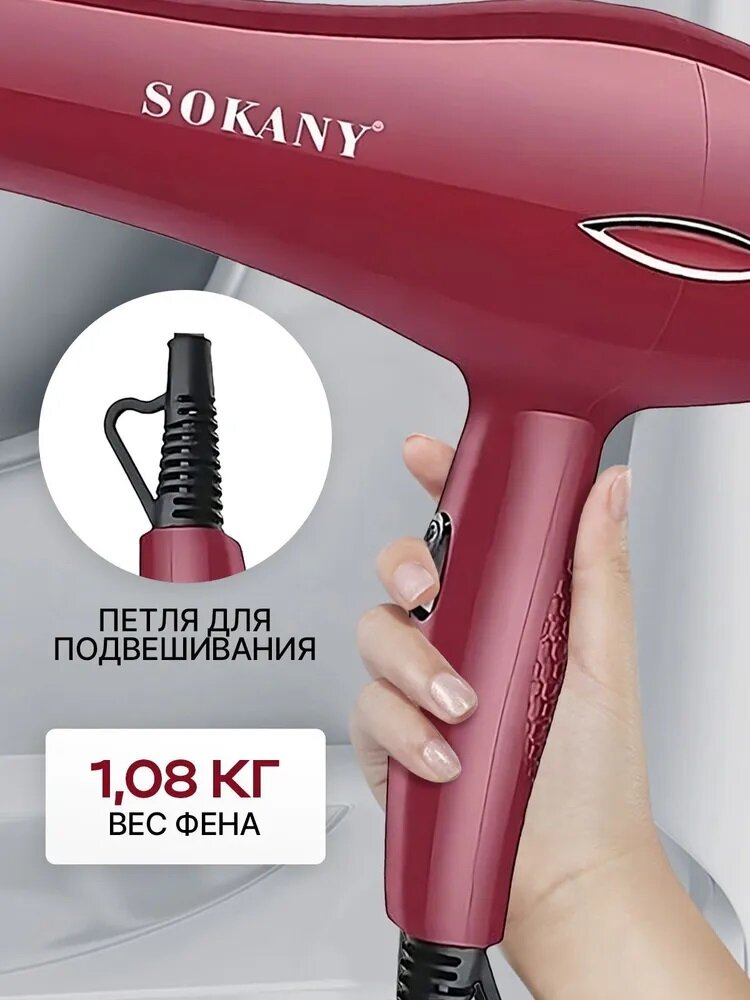 Универсальный фен для всех типов волос/HEALTHY AND STRONG/SK-2215/концентратор/диффузор/2600 Вт/удобная ручка/красный