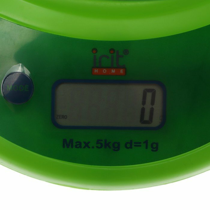 Весы кухонные электронные, Irit, IR-7119, чаша, точность 1 г, до 5 кг, зеленые
