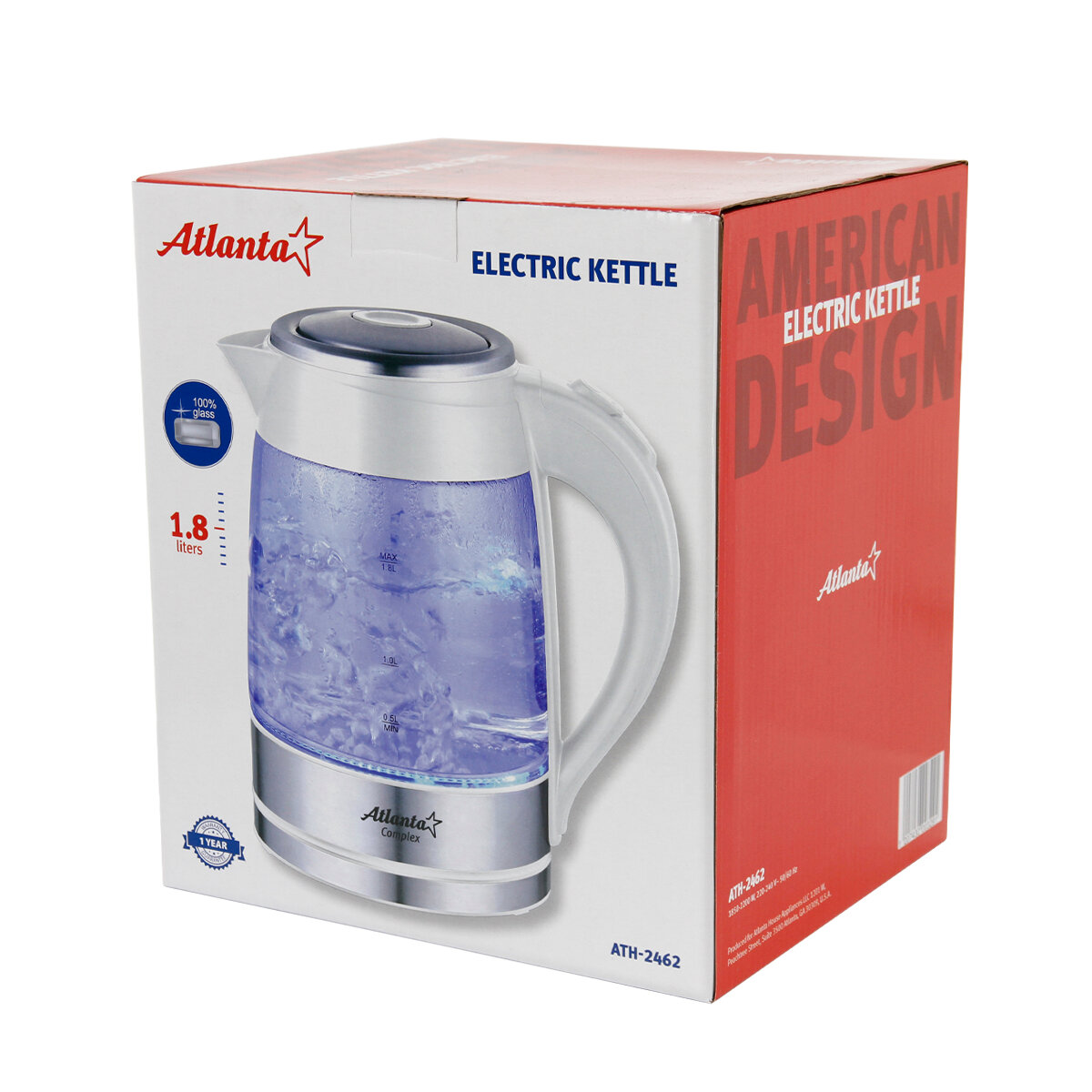 ATH-2462 (white) Чайник стеклянный электрический, Atlanta