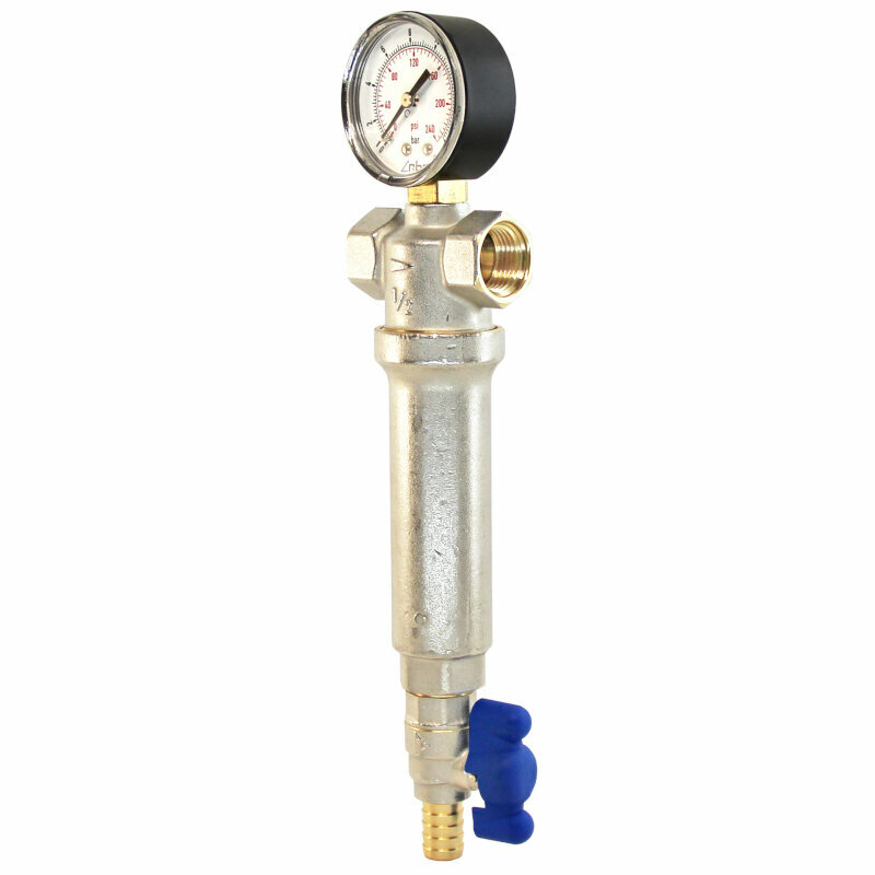Фильтр промывной RBM ВВ 1/2" со сливным шаровым краном и манометром 100 мкм 01260410