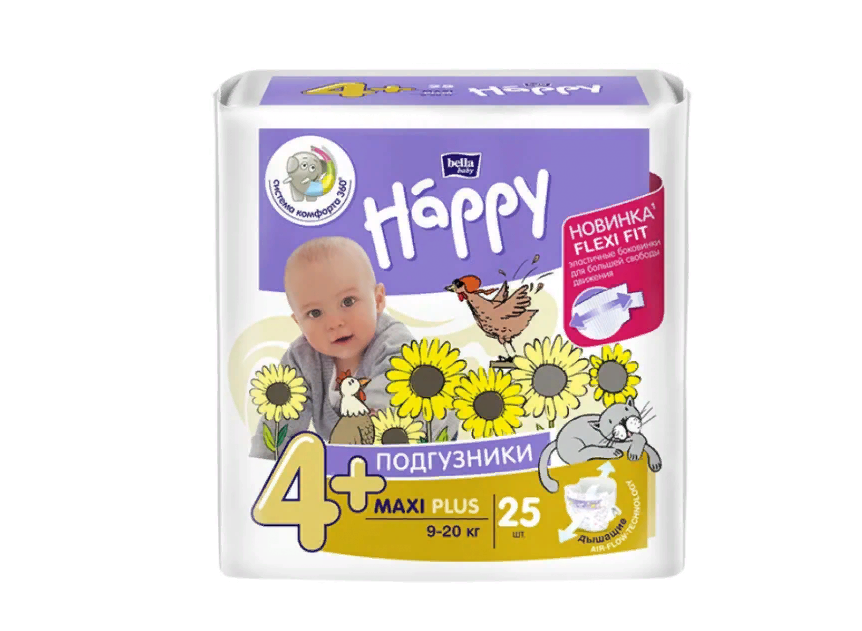 Подгузники для детей bella baby Happy Maxi Plus, размер 4+ (вес 9-20 кг), 25 шт.