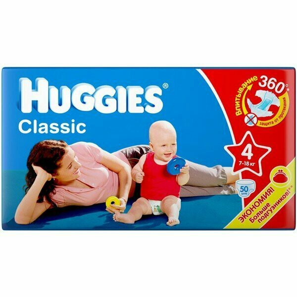 Huggies подгузники Classic 4 (7-18 кг), 50 шт.