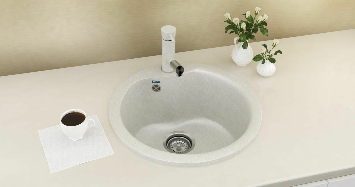 Мойка кухонная Ulgran из искусственного мрамора круглая U-102, цвет: белый, база: 45.5х45.5 см, арт. U-102-331