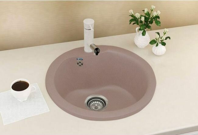 Мойка кухонная Ulgran из искусственного мрамора круглая U-102, цвет: бежевый, база: 45.5х45.5 см, арт. U-102-328