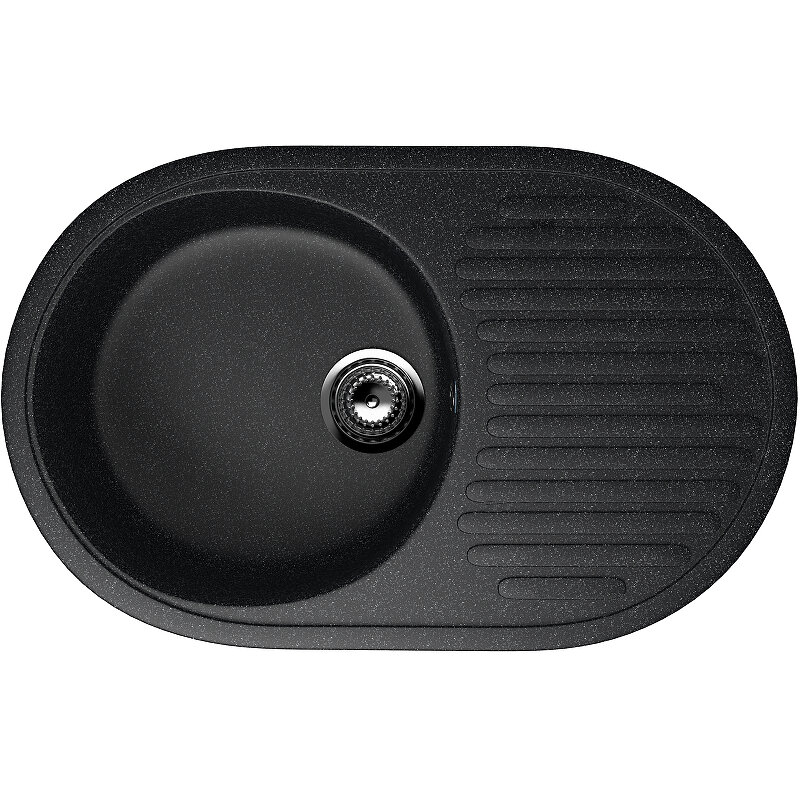Мойка кухонная Ulgran из искусственного мрамора овальная U-107, цвет: ультра-черный, база: 69.5х43 см, арт. U-107-344