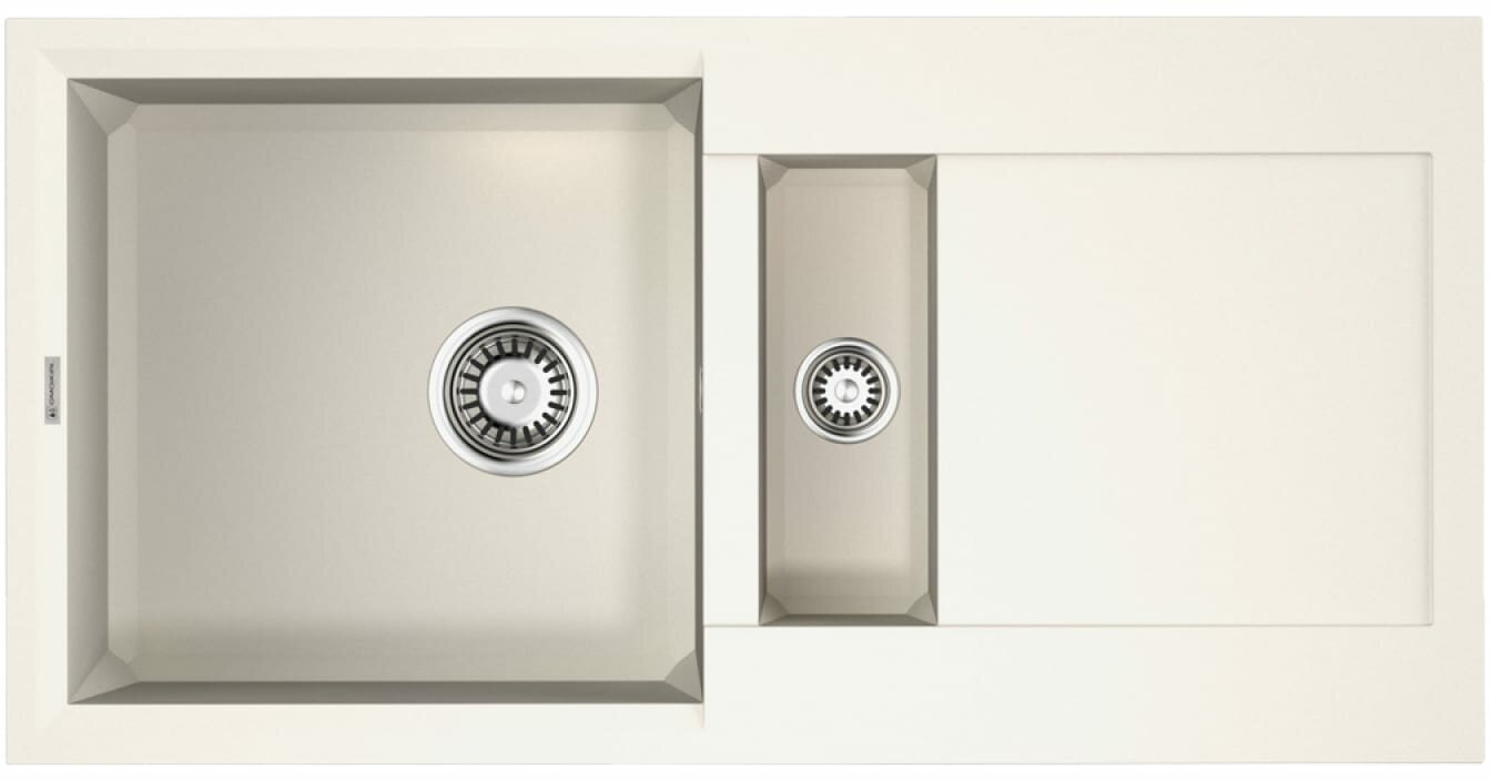 Кухонная мойка двухчашевая с крылом OMOIKIRI Sakaime 86-2-WH, искусственный гранит/белый