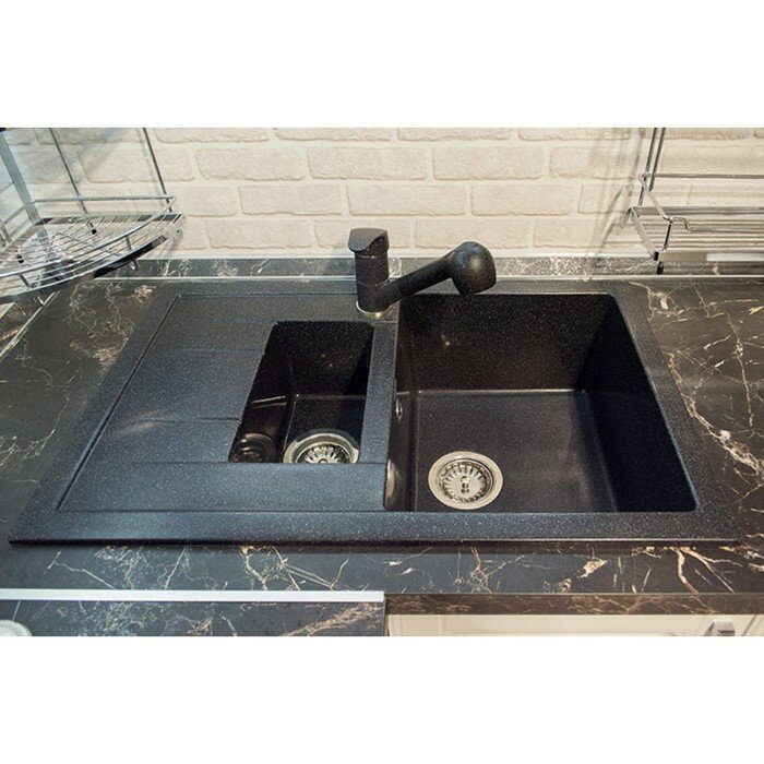 Мойка GRANFEST мрамор QUADRO GF-Q-775KL (765*495*200 мм), черный, с сифоном и сливной арматурой