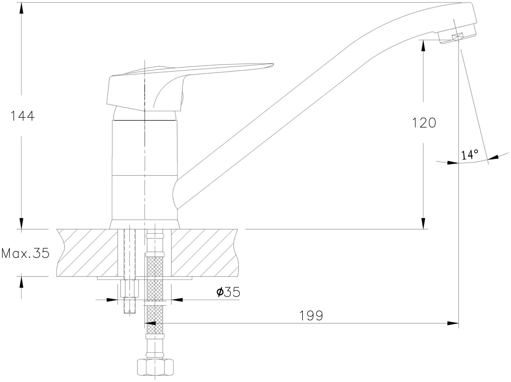 Haiba Смеситель для кухни (Lt) плоский поворотный излив, керам.карт.35мм, шпилька, хром, HB4837