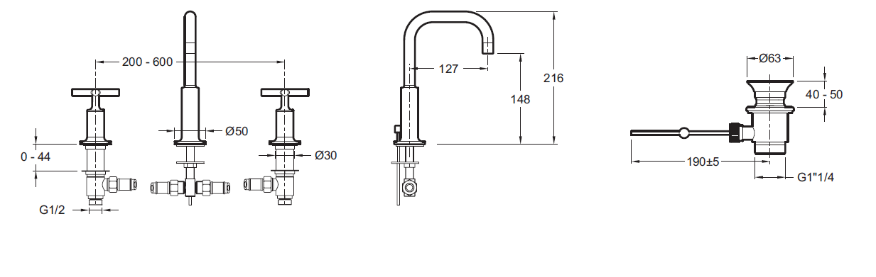 Смеситель для раковины на 3 отверстия Jacob Delafon Purist E144063-CP