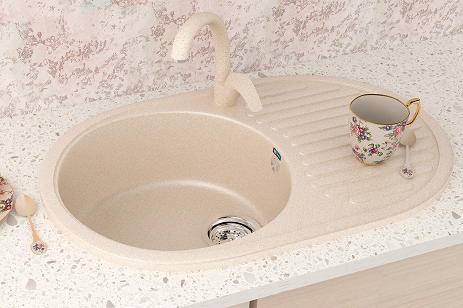 Смеситель Ulgran U-007 (328) бежевый, для кухонной мойки