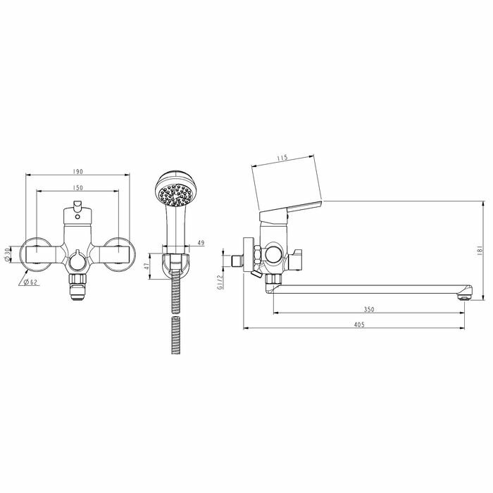 Смеситель ESKO London LD 31 для ванны, излив 350мм, с аксессуарами