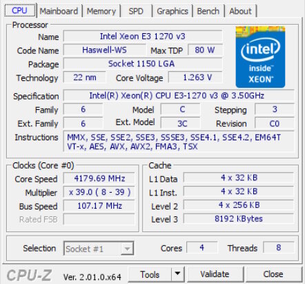 | Плюсы: | Xeon E3-1245V3 = i7 4770 за меньшие деньги, радует что есть встроенная графика (HD P4600) |