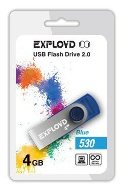 Купить Флешка Exployd 530, 4 Гб, USB2.0, чт до 15 Мб/с, зап до 8 Мб/с, синяя