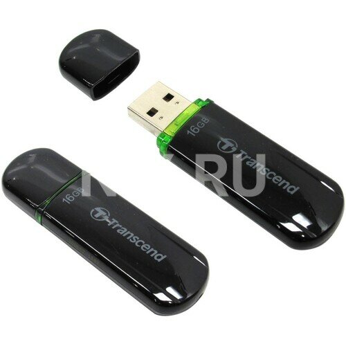 Флешка Transcend JetFlash 600 16 ГБ, 1 шт., черный/зеленый