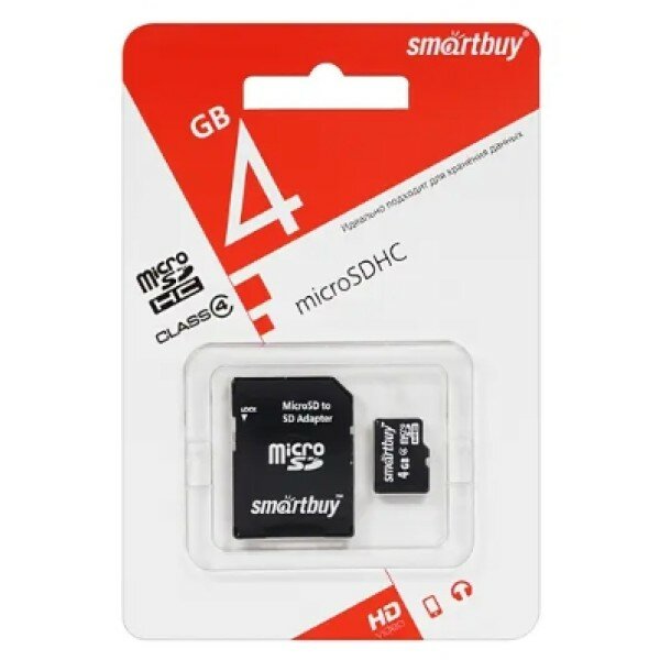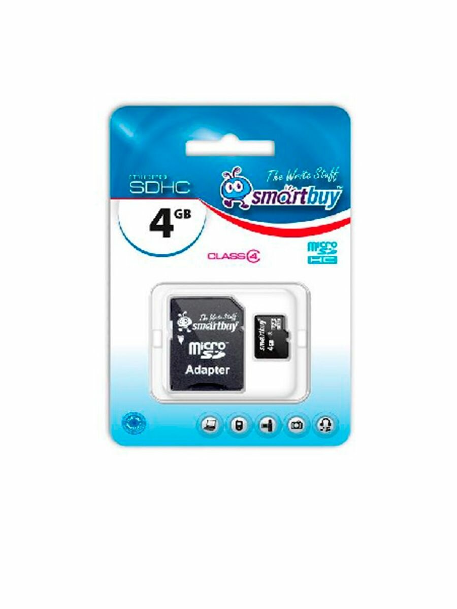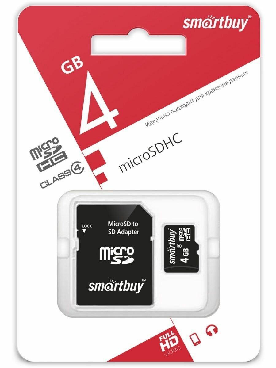 micro SDHC карта памяти Smartbuy 4GB Class 4 (с адаптером SD)