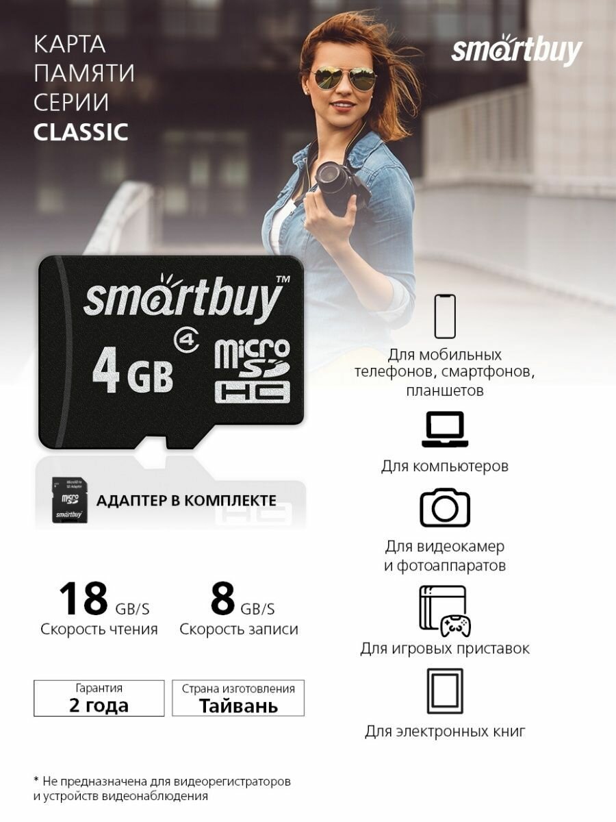 Память microSD 4Gb Smartbuy SB4GbSDCL4-01 .