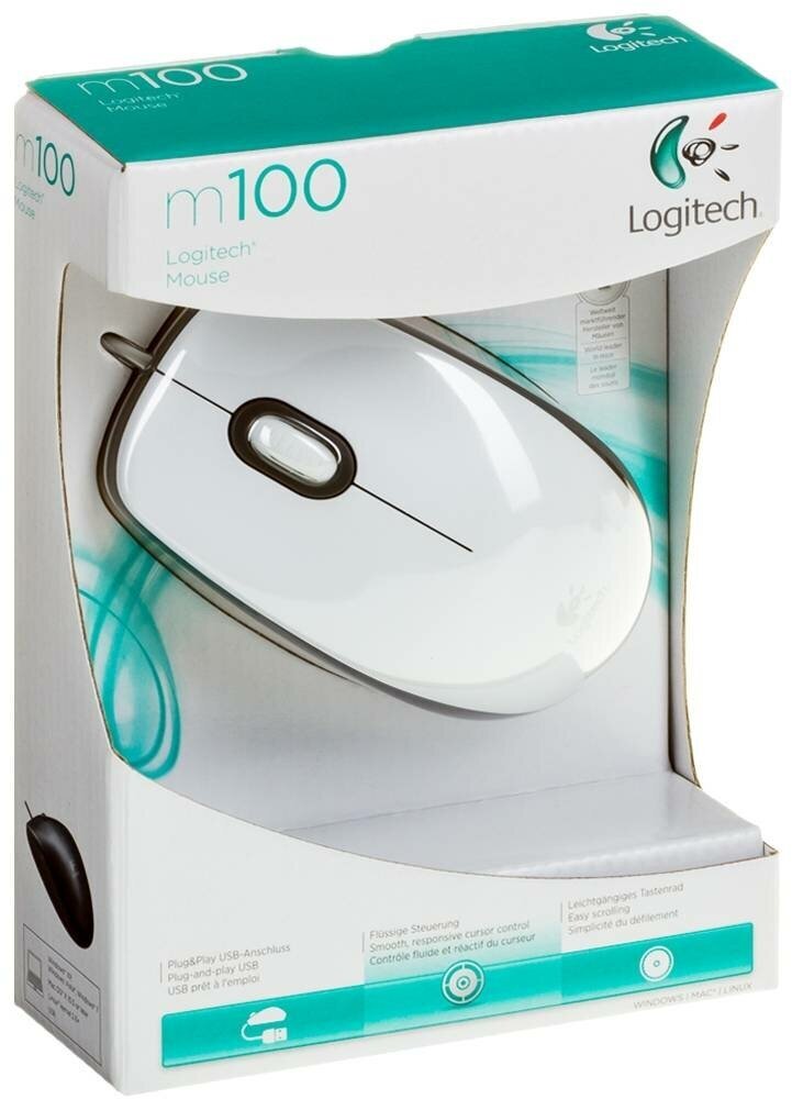 Мышь Logitech M100, проводная, оптическая, 1000 dpi, USB, белая Logitech 6784277 .