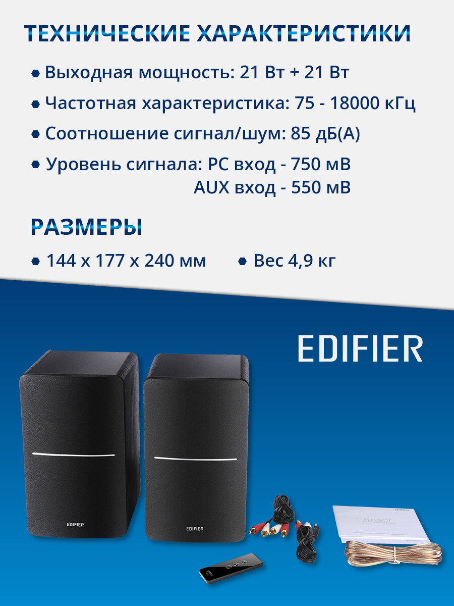 Ниже Вы можете прочитать отзывы на Edifier R1280T Black, ознакомится с подробными характеристиками, посмотреть интересные обзоры и фотографии на Edifier R1280T Black.