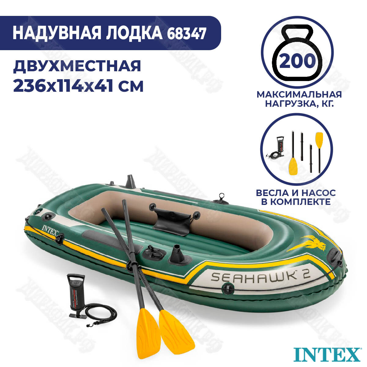 Лодка надувная Intex Seahawk 200+весла и насос, 236х114х41 см, артикул 68347