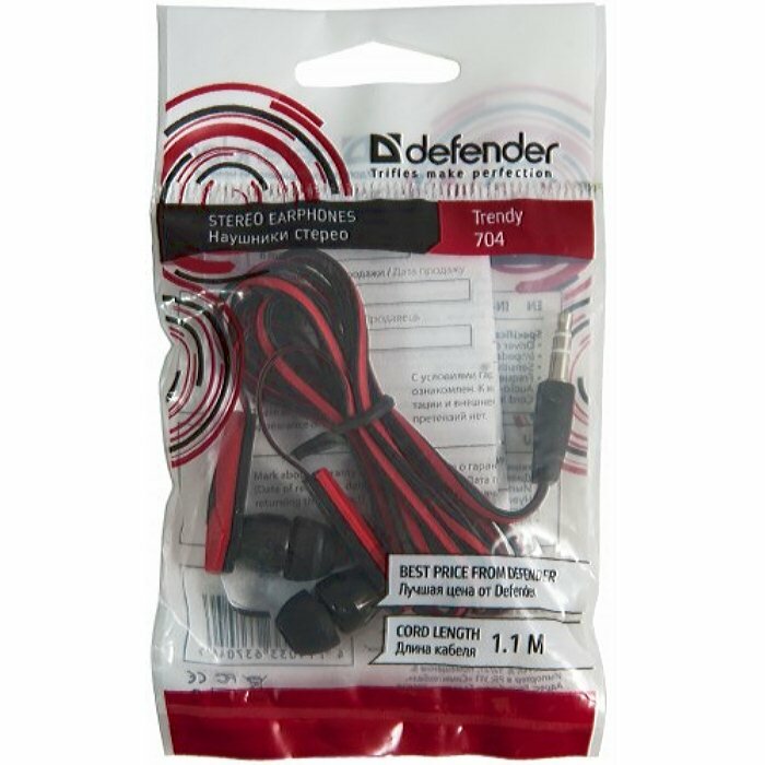 Наушники-вкладыши Defender "Trendy" 704, 1,1м, черный, красный 224999 интересное: