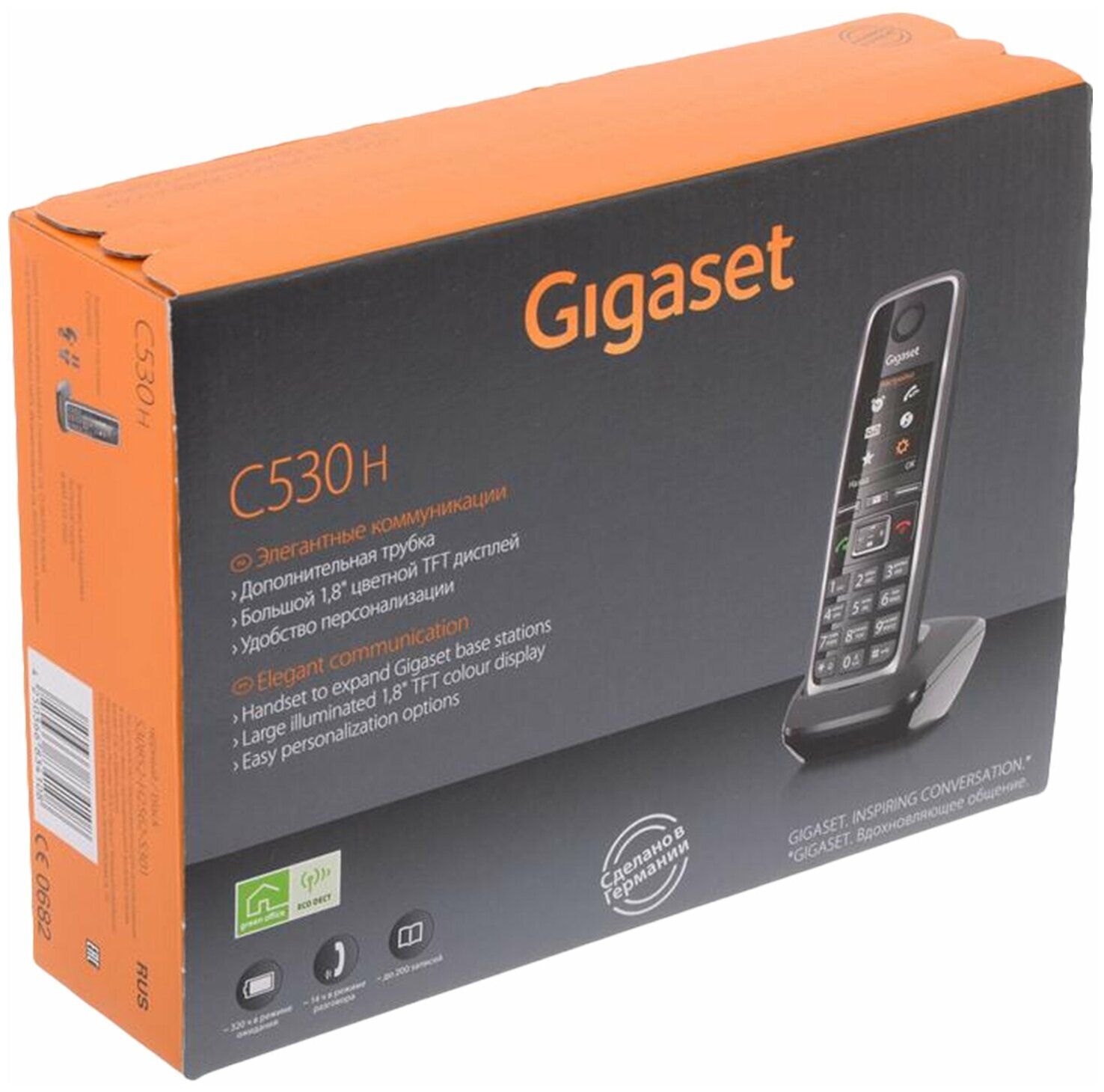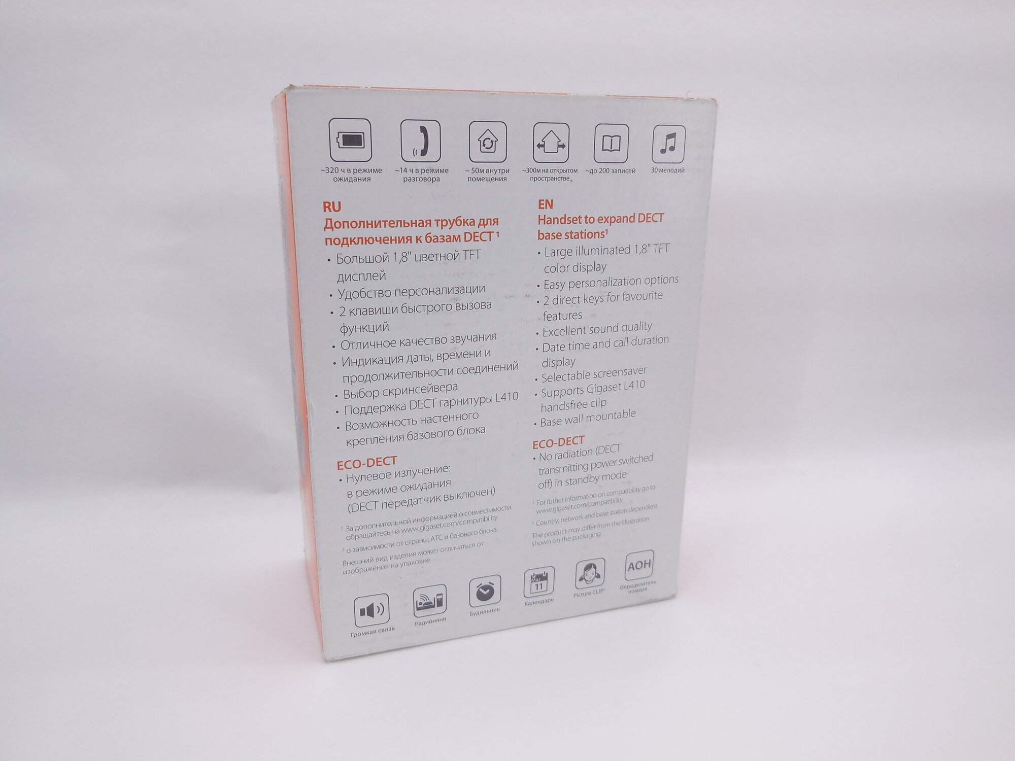 | Дополнительная информация | поддержка гарнитуры Gigaset L410, размер зарядного устройства 75x71x36 |