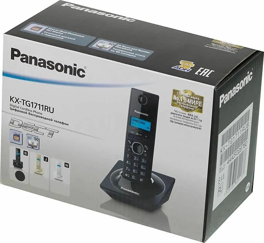Радиотелефон PANASONIC KX-TG1711RUB, память на 50 номеров, АОН, повтор, часы/будильник, чёрный
