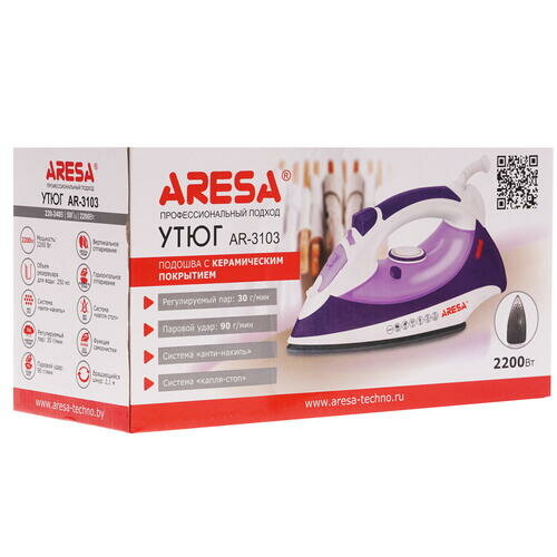 Утюг Aresa AR-3103 подошва из керамики, "капля-стоп", "анти-накипь", функция самоочистки