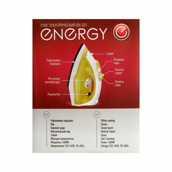 Утюг Energy EN-327 1600 Вт, подошва тефлоновая, желтый