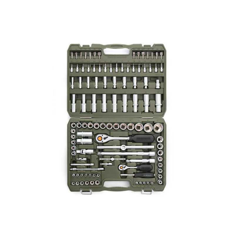 | Головки торцевые подробно | 1/4": 4, 4.5, 5, 5.5, 6, 7, 8, 9, 10, 11, 12, 13, 14 мм; длинные 1/4": 6, 7, 8, 9, 10, 11, 12, 13 мм; Torx 1/4": E4, E5, E6, E7,… E8; с битами 1/4": SL4, SL5.5, SL6, PH1, PH2, PZ1, PZ2, H3, H4, H5, H6, T8, T10, T15, T20, T25, T27, T30; вороток т-образный 1/4": 115 мм; трещетка 1/4": 45 зубов; удлинитель 1/4": 50, 100 мм; карданный шарнир 1/4"; 1/2": 10, 11, 12, 13, 14, 15, 16, 17, 18, 19, 20, 21, 22, 24, 27, 30, 32 мм; длинные 1/2": 14, 15, 17, 19, 22 мм; Torx 3/8": E10, E11, E12, E14, E16, E18, E20, E24; свечные 1/2": 16, 21 мм; трещетка 1/2": 45 зубов; удлинитель 1/2": 125, 250 мм; карданный шарнир 1/2"; ещёскрыть |