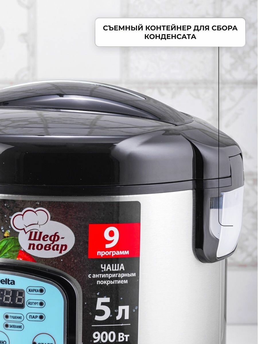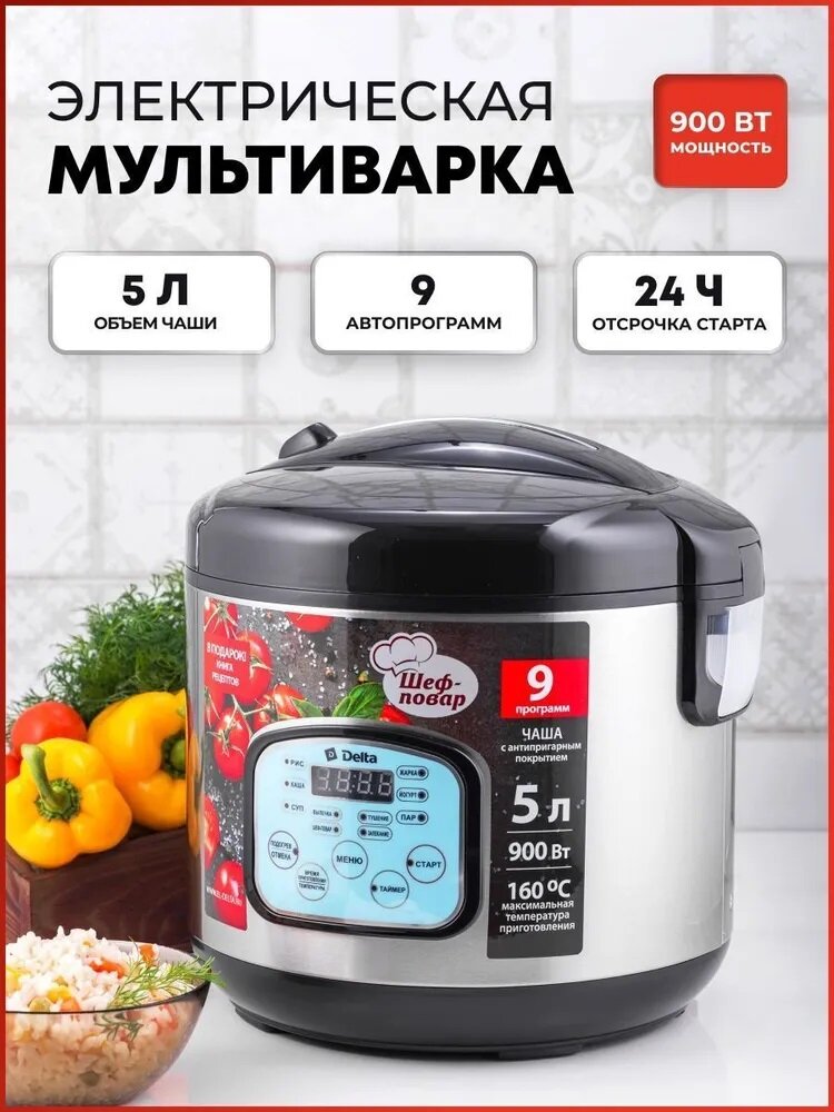 Купить Мультиварка 5.0Л 900ВТ 9 прогр антиприг покр ЭЛ УПР ШЕФ-повар DELTA