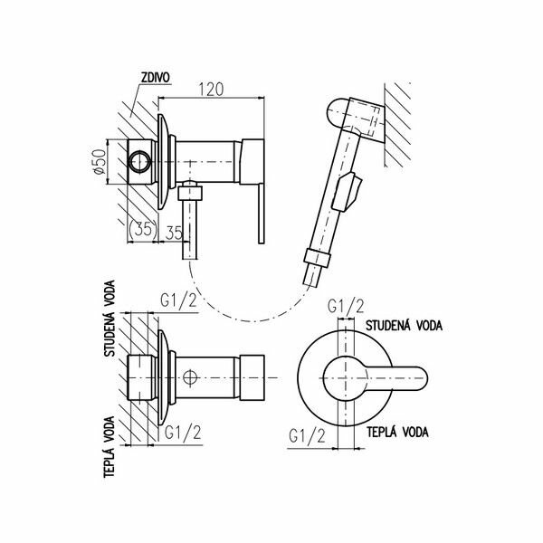 Смеситель RAV Slezаk Zambezi для биде, включая тело скрытого монтажа, держатель пласт, душевой лейкой с нажимным механизмом пласт.