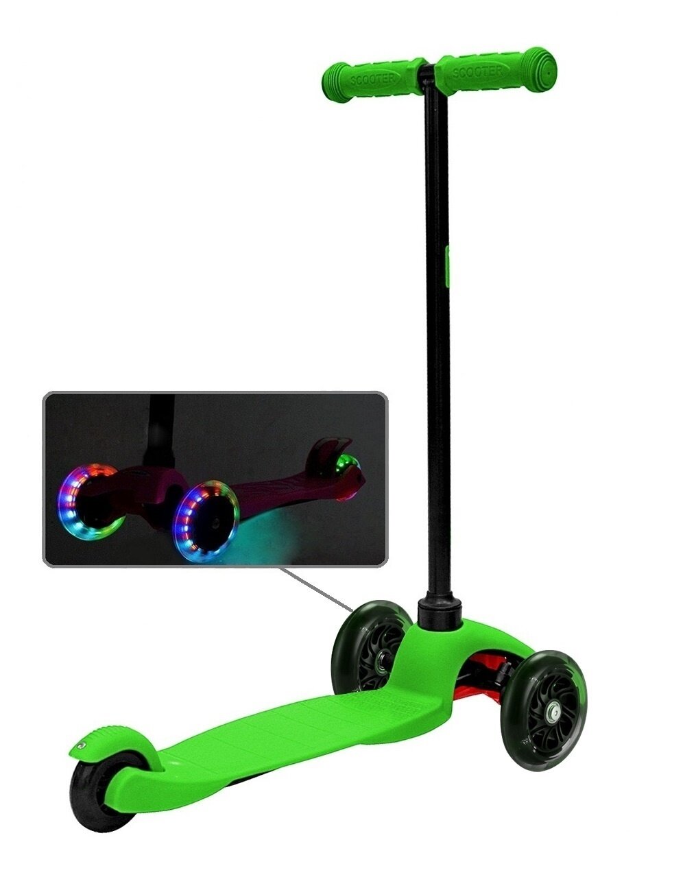 Самокат Y-SCOO mini A-5 Shine цв. green со светящими колесами