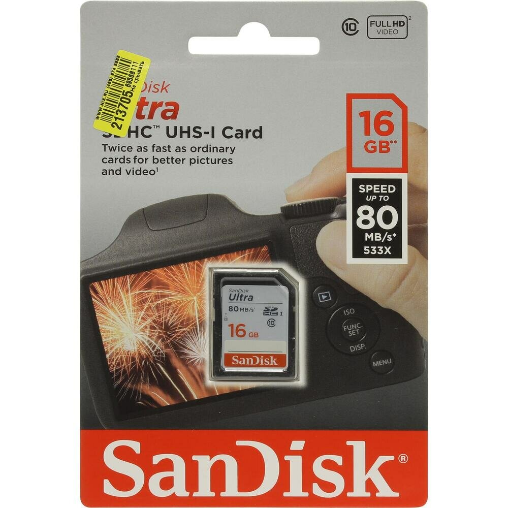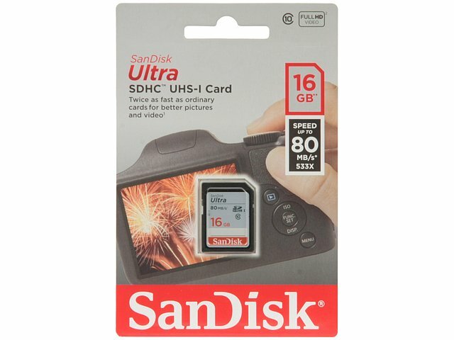 Карта памяти SanDisk SDHC Ultra Class 10 UHS-I U1 (80/10MB/s) 16GB