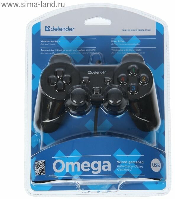Купить Геймпад Defender Omega USB, проводной, вибрация, для PC, USB, черный