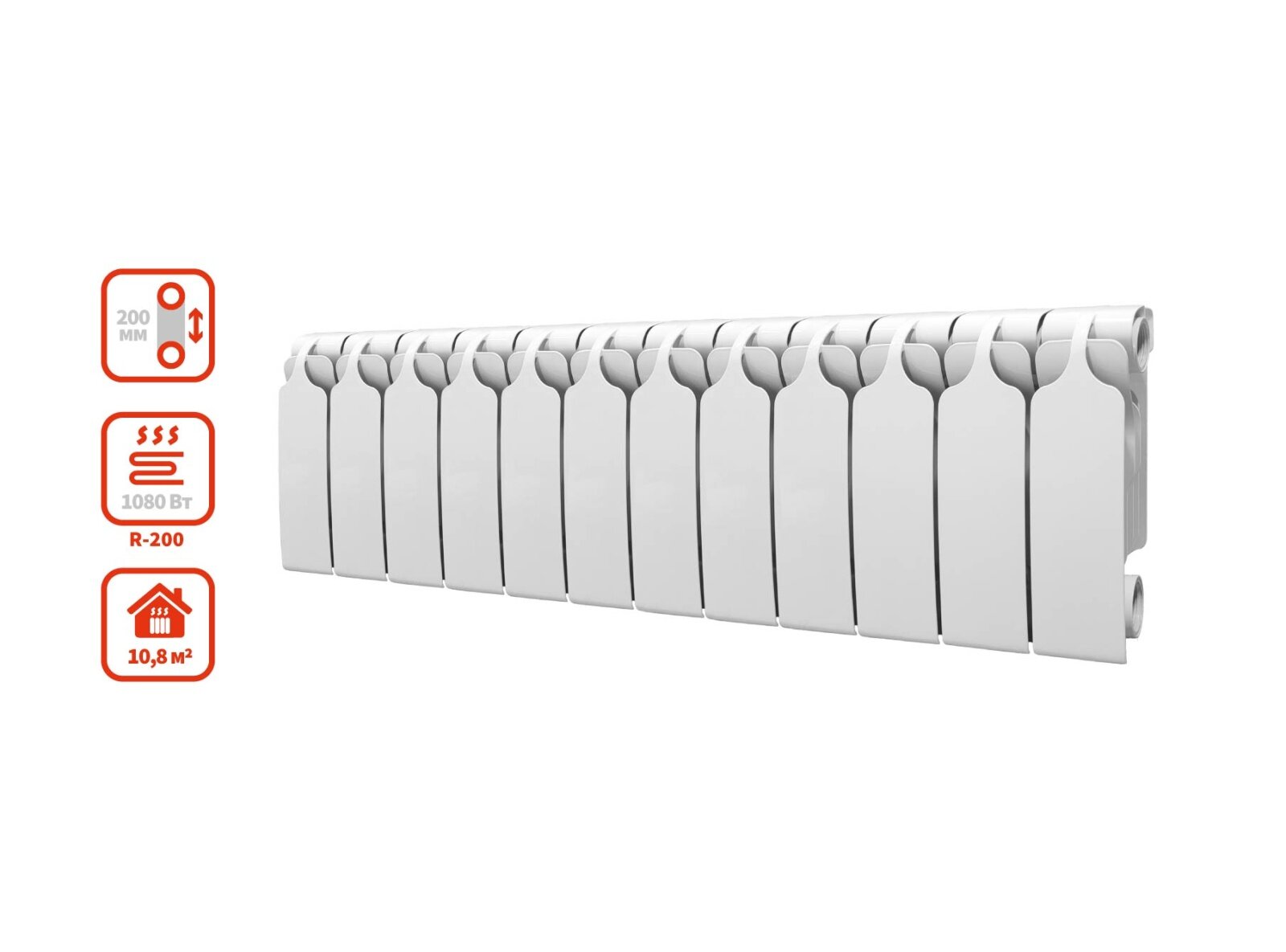 Радиатор биметаллический Bilux Plus R 200 8-секционный (720Вт), боковое подключение, 7.2 м2